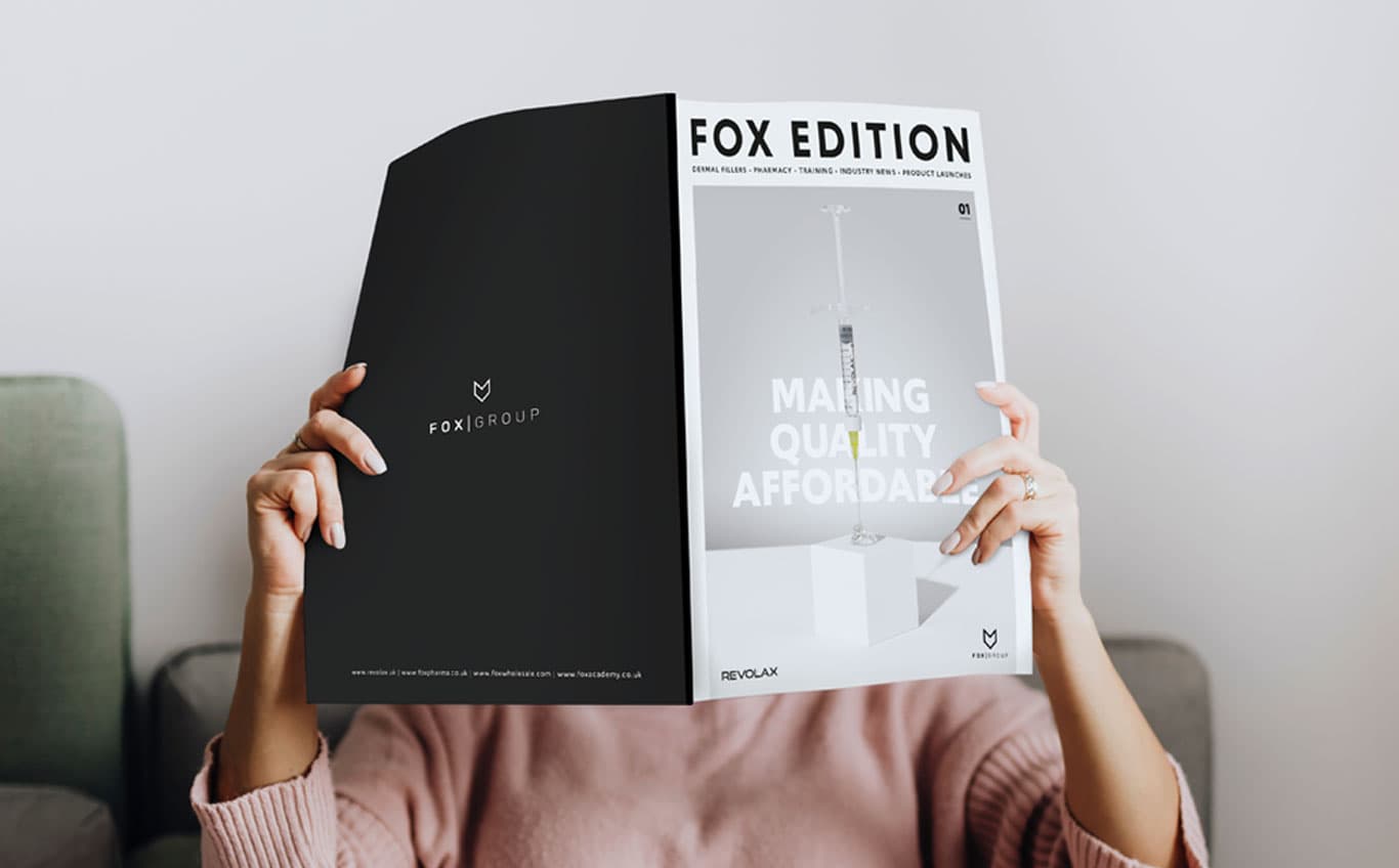 Fox Group’s own magazine, Fox Edition is distributed to 25,000 clinics across the UK and showcases leading brands in the industry such as REVOLAX, Teosyal and Belotero. Additionally, Fox Edition shares tips and techniques taken from Fox Academy – the only UK aesthetic training facility with courses that are surgeon led and developed.
